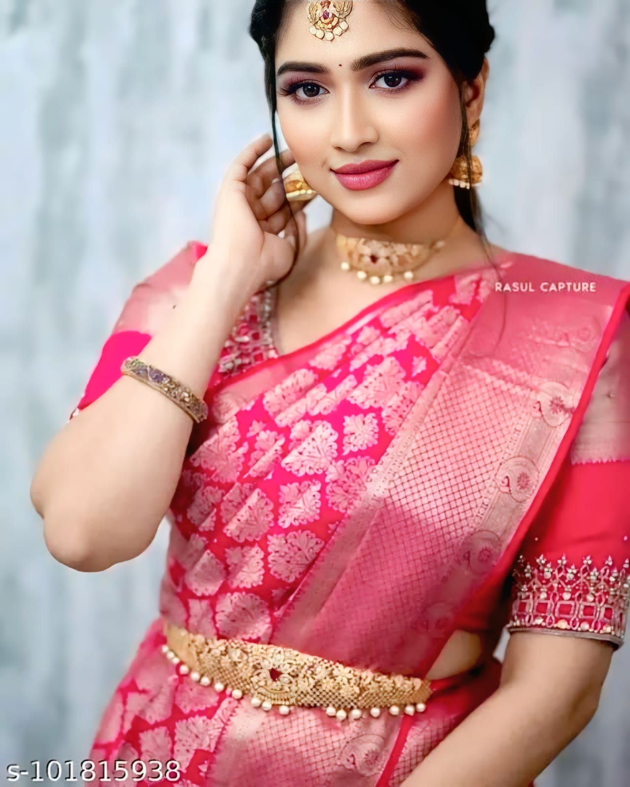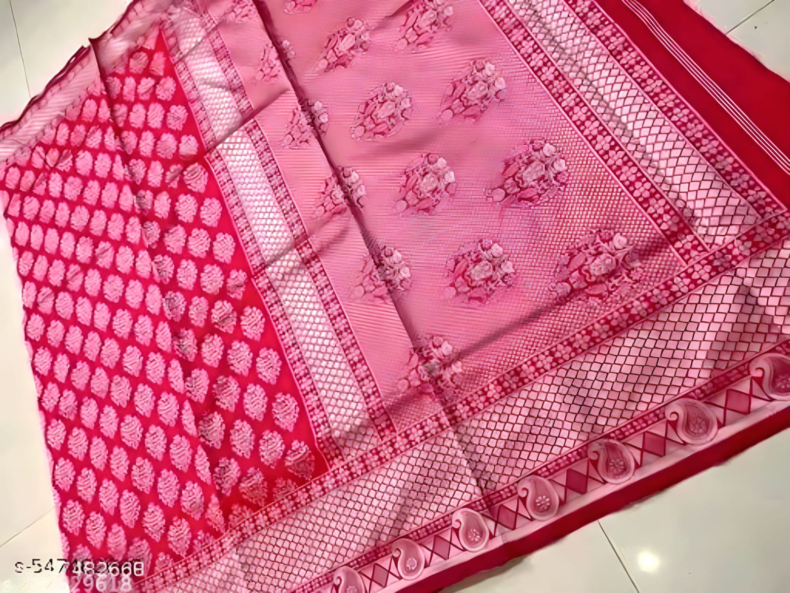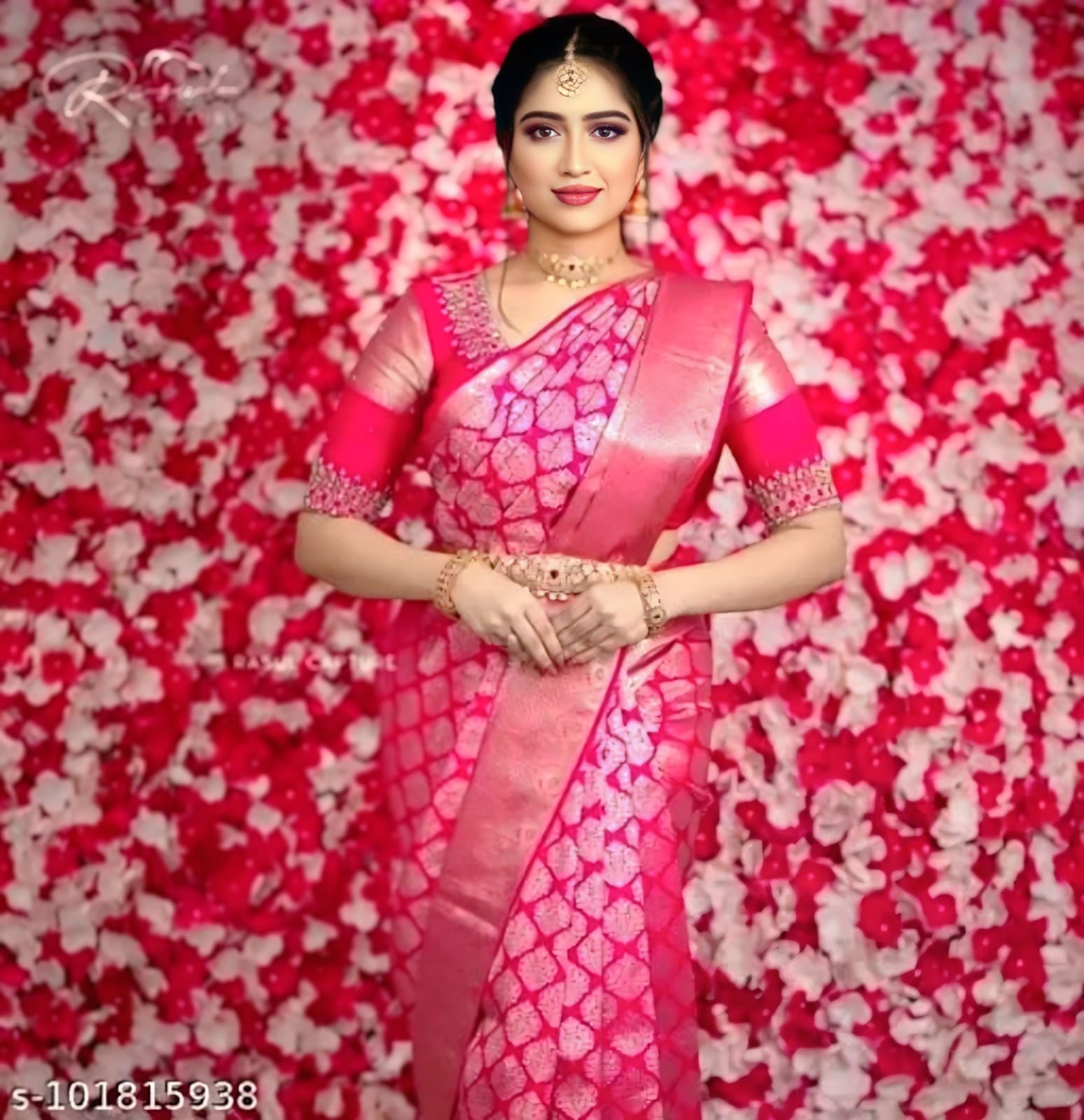 Color: Deep Rose Pink with Gold Zari